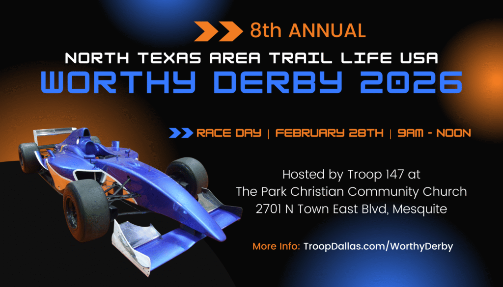 On February 28, 2026, Troop TX-0147 is hosting the 8th Annual Trail Life USA Worthy Derby for all Trail Life USA troops who wish to participate, boys and adults alike! This event is open to all family members who would like to attend and cheer on their favorite Trailmen.